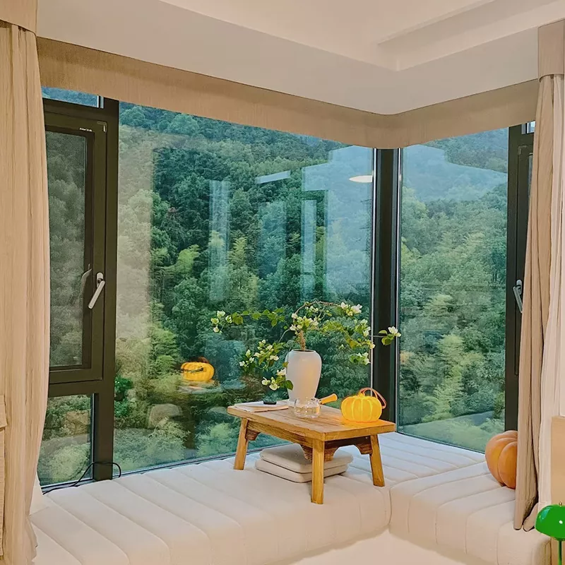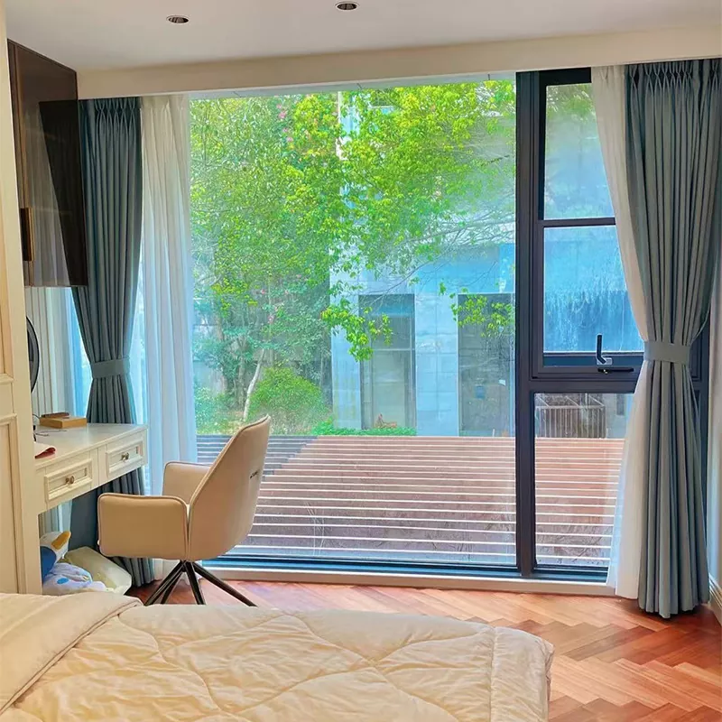 Reka bentuk ini mempunyai struktur "bingkai aloi aluminium anod + kaca terbaja", dengan pemasangan sudut bersepadu untuk mengedarkan tekanan secara sama rata, memastikan kestabilan sambil mengekalkan rangka yang ringan. Tingkap tingkap dilengkapi dengan engsel aloi aluminium luaran atau tersembunyi, membuka ke sudut 90°, dan mengelak dengan ketat apabila ditutup. gelongsor tingkap menampilkan sistem trek senyap yang meluncur dengan lancar, mengurangkan bunyi bising dan menjimatkan ruang—sesuai untuk kecil pangsapuri.