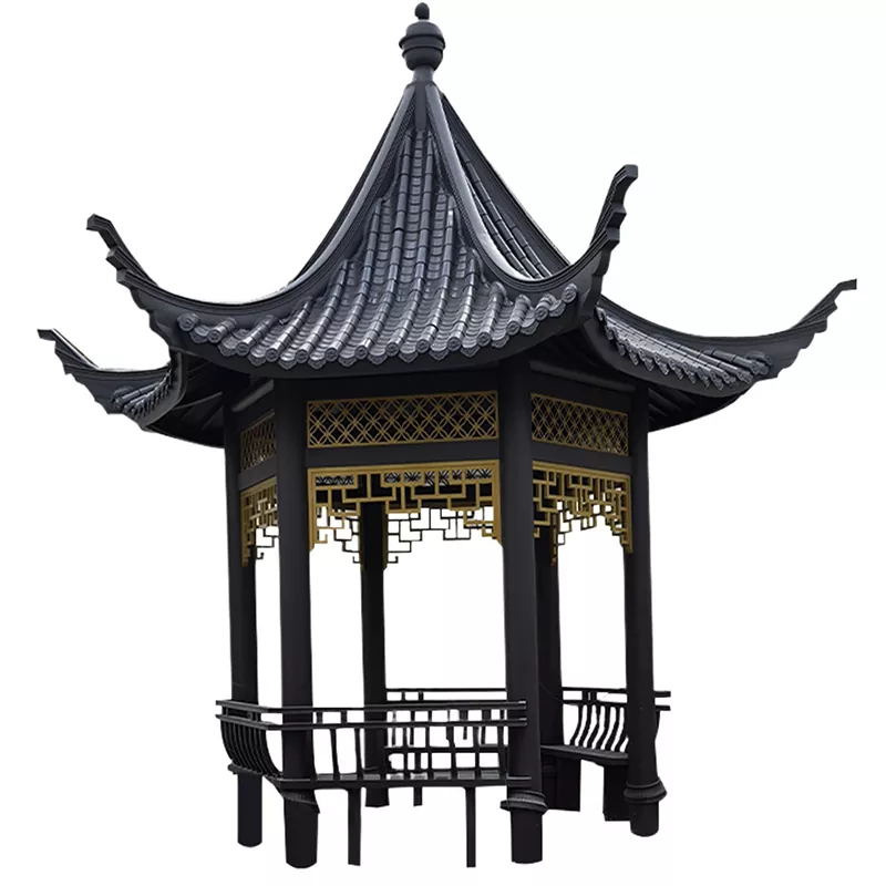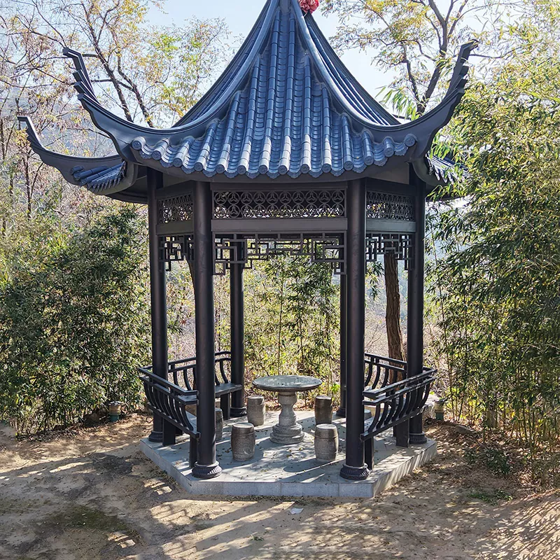 Pemasangan memerlukan tapak konkrit dengan kedalaman ≥300mm. Pastikan tiang adalah menegak, dan sambungan tanggam dan duri dipasang dengan ketat. Jubin bumbung harus diletakkan mengikut ketukangan kuno, memastikan kalis air yang betul dan pemasangan kurungan dougong dan komponen gantung yang tepat untuk mengekalkan kestabilan dan daya tarikan estetik.