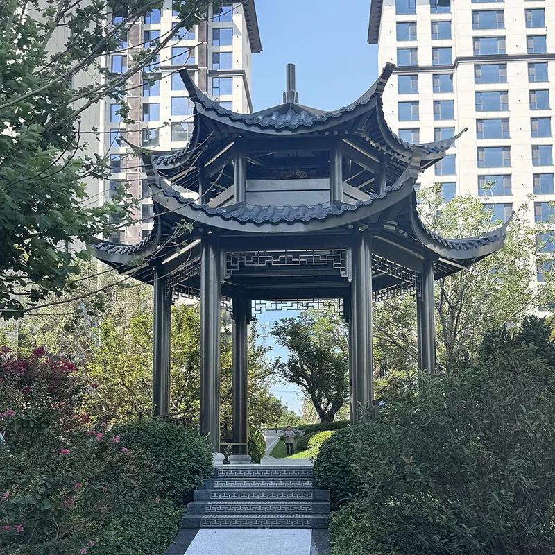 Digunakan secara meluas di kawasan pemandangan purba, halaman gaya Cina, tempat kebudayaan dan taman perbandaran, produk tersebut mewarisi budaya seni bina purba dan menyelesaikan masalah pavilion tradisional yang terdedah kepada reput dan sukar diselenggara melalui penyelesaian "ketukangan tradisional + anti-karat moden", menyediakan perkhidmatan tersuai untuk pelbagai projek landskap gaya kuno.